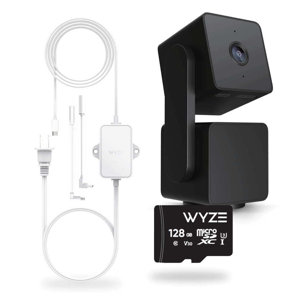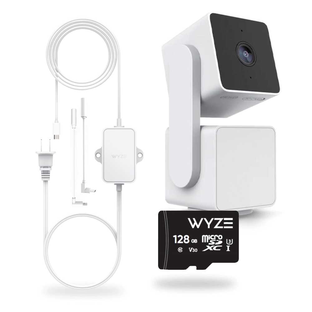 Wyze Cam Pan v3 is a redesigned indoor/outdoor, 360° pan and 180° tilt security camera, and is fully IP65 weather resistant. Pop in the included 128GB MicroSD card for nonstop recording and fun time lapses that capture every tiny detail. Plus, the Wyze Outdoor Power Adapter keeps things safely powered up so you never miss a beat.